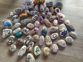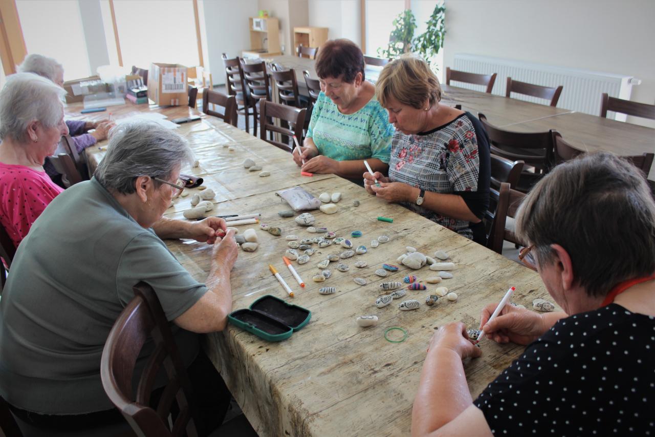 Jelikož je tu spoustu seniorů, kteří rádi kreslí, ale na malování se necítí, připravili jsme si takové menší omalovánky na kamínkách.