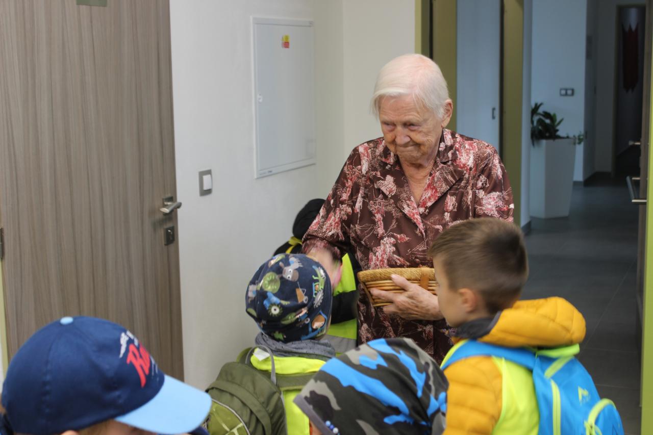 Ve čtvrtek nás navštívila místní školka s předškoláky. Vytvořili pro nás překvapení s podzimní tvořením, věnečkem na dveře.