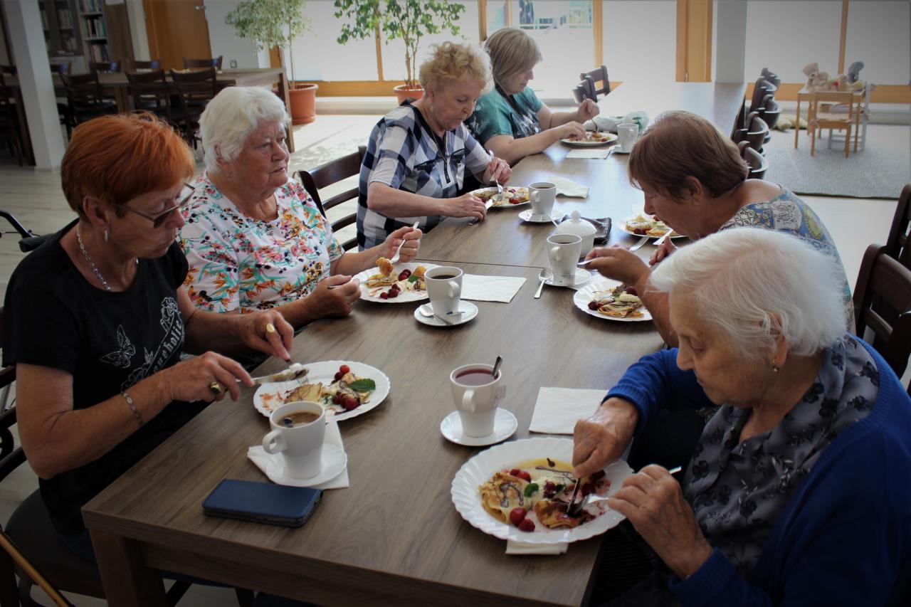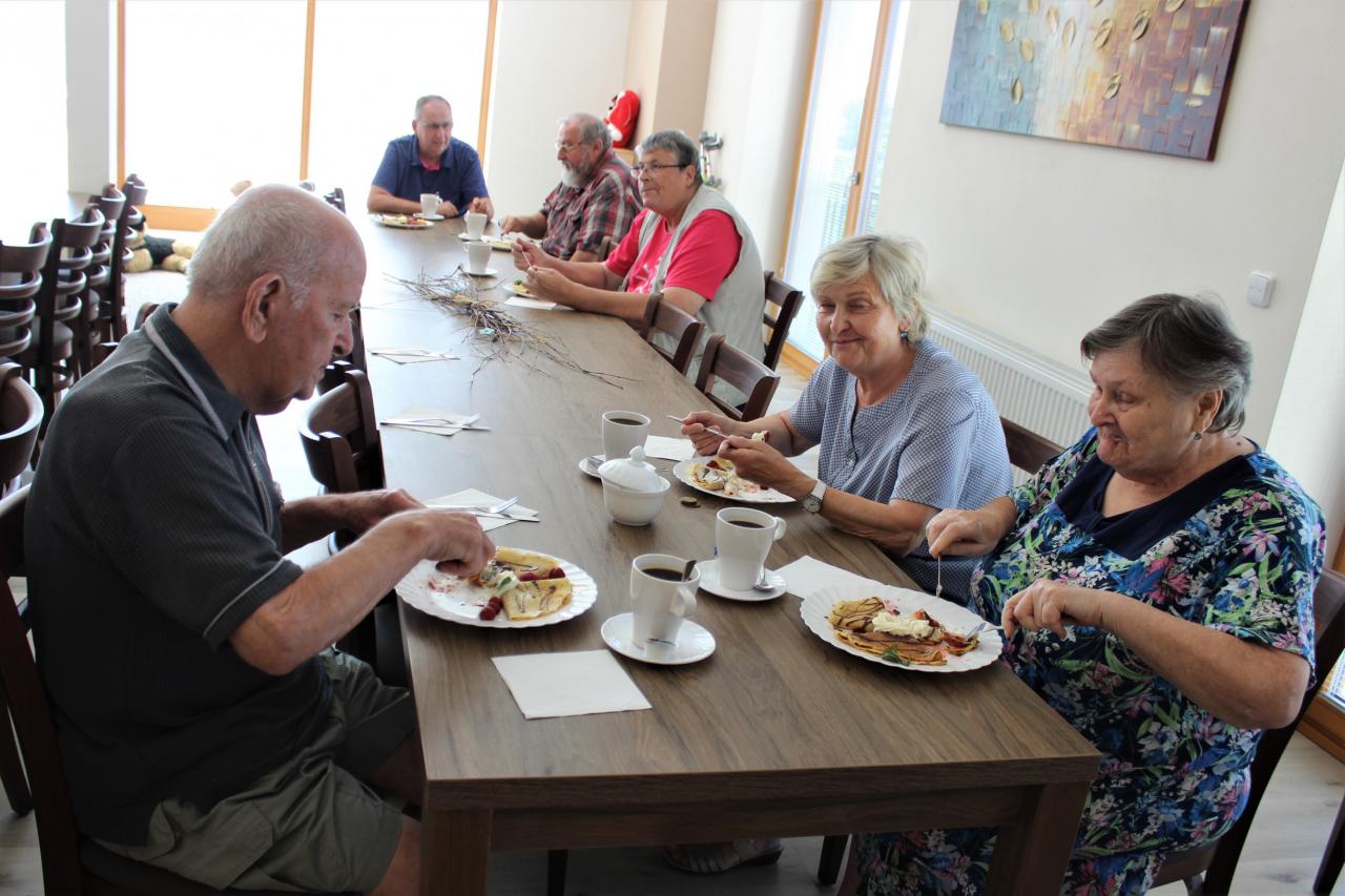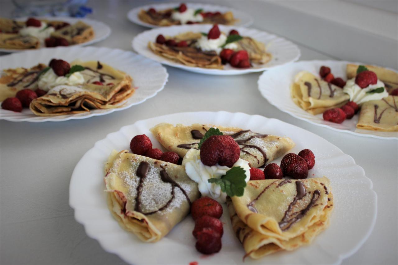 V úterý ráno jsme měli sladkou snídani, palačinky se šlehačkou a ovocem.